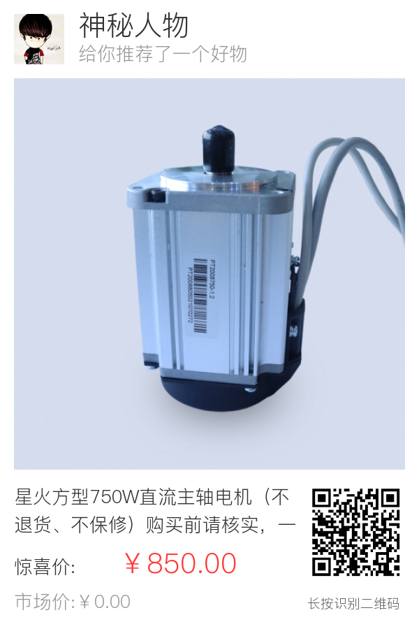 星火方型750W直流主轴电机(不退货、不保修)购买前请核实,一经售出,产品概不退货